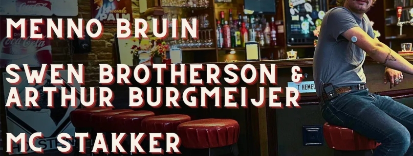 Het wordt een muzikale avond met de artiesten Menno Bruin, Swen Brotherson & Arthur Burgmeijer.