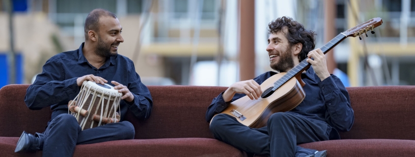 Naast zijn gitaar speelt Juliano ook de oud (een Midden-Oosterse luit), en Tarang voegt aan de tabla zijn beheersing van konnakol toe, de traditionele kunst van vocale percussie. Hun aanstekelijke energie trekt je naar binnen en de intieme setting zorgt ervoor dat je je moeiteloos verbonden voelt met elke beat en elke ademhaling.