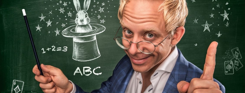 Ontdek samen met meester Huub de geheimen van de betoverde klas. Een familievoorstelling vol magische trucs, grappige twists, jongleerkunsten en verrassende effecten.
