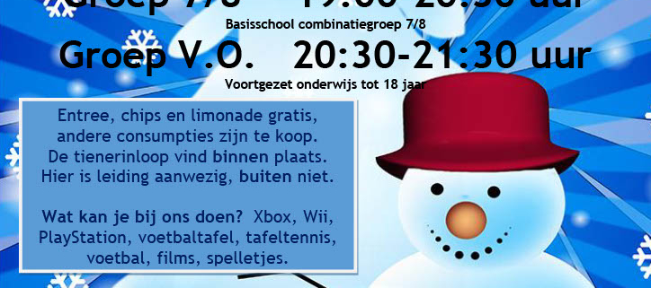 Van 19:00-21:30 uur voor groep 7/8 en daarna van 21:30 tot 21:30 uur voor V.O.