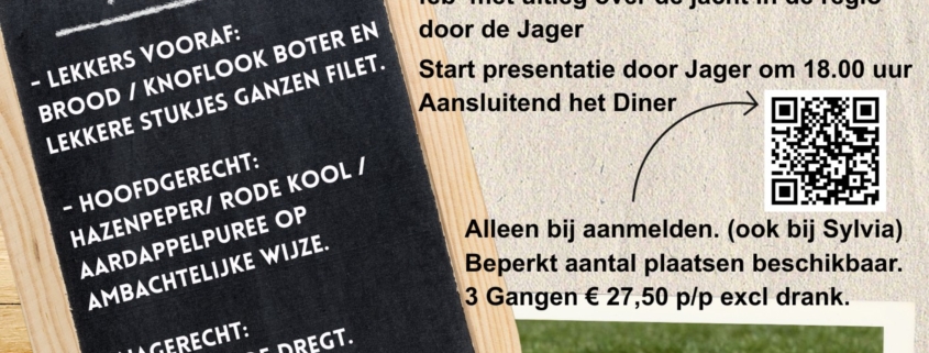 Start presentatie door Jager om 18.00 uur , aansluitend het Diner