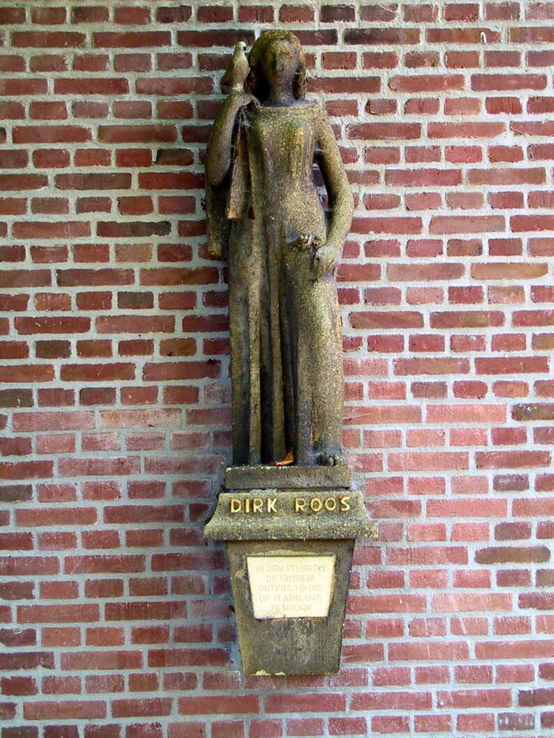 Monument Dirk Roos Het monument voor Dirk Roos in Oosterleek is een herinnering aan de verzetsman die op 17 april 1945 is geëxecuteerd. Dirk Roos werd geboren op 21 december 1918 te Oosterleek en vocht tijdens de meidagen van 1940. Hij werd opgeroepen voor dwangarbeid in Duitsland en sloot zich aan bij het verzet. Dirk Roos werd gevangen genomen en naar Hoorn overgebracht, waar hij een vluchtpoging ondernam. Hij werd op 17 april 1945 geëxecuteerd. Het monument is onthuld in 1947 of 1948 en is geplaatst op een voetstuk.
