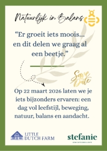 Vorig jaar kreeg ik een idee dat meteen bleef hangen: wat als Kim van Little Dutch Farm en Stefanie Gewichtsconsulente samen iets zouden organiseren? Beiden deelden volgens mij hetzelfde gedachtegoed, hoewel ze elkaar nog niet kenden en hemelsbreed zo dicht bij elkaar wonen: Hem en Wijdenes. Tijdens een eerste kennismaking merkten we dat hun speerpunten en draagvlakken mooi op elkaar aansluiten. Zo ontstond het idee voor Natuurlijk in Balans.