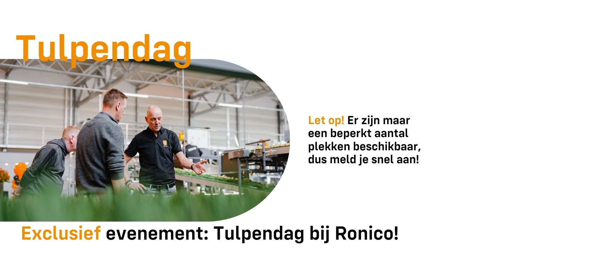 In aanloop naar de Nationale Tulpendag openen wij onze deuren voor een uniek en kosteloos evenement, mét een bijzonder kijkje achter de schermen bij Ronico! Tijdens deze middag vertellen we meer over ons bedrijf en nemen wij jullie mee in onze nieuwe kas waarin je het volledige tulpenproces van dichtbij kunt ervaren. Daarnaast is er […]